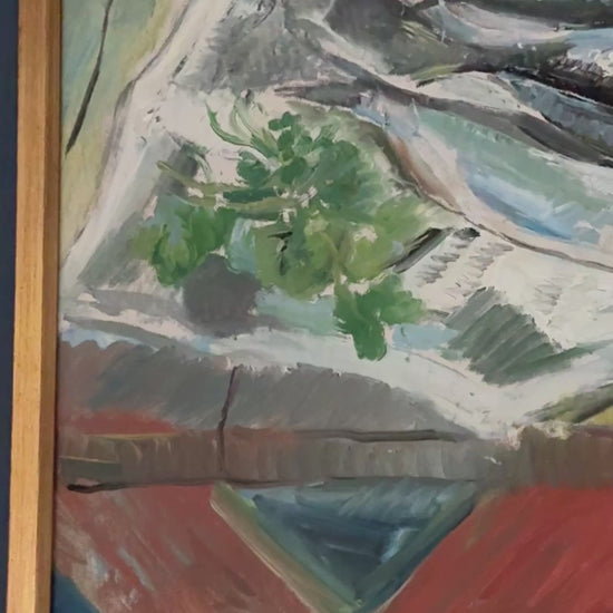 The painting is surface cleaned and comes with a complementary, well-suited vintage wooden. Both painting and frame may show some age-related wear and tear, which largely contributes to their charm. The best way to see this is through the photos, so study them because they form the description.