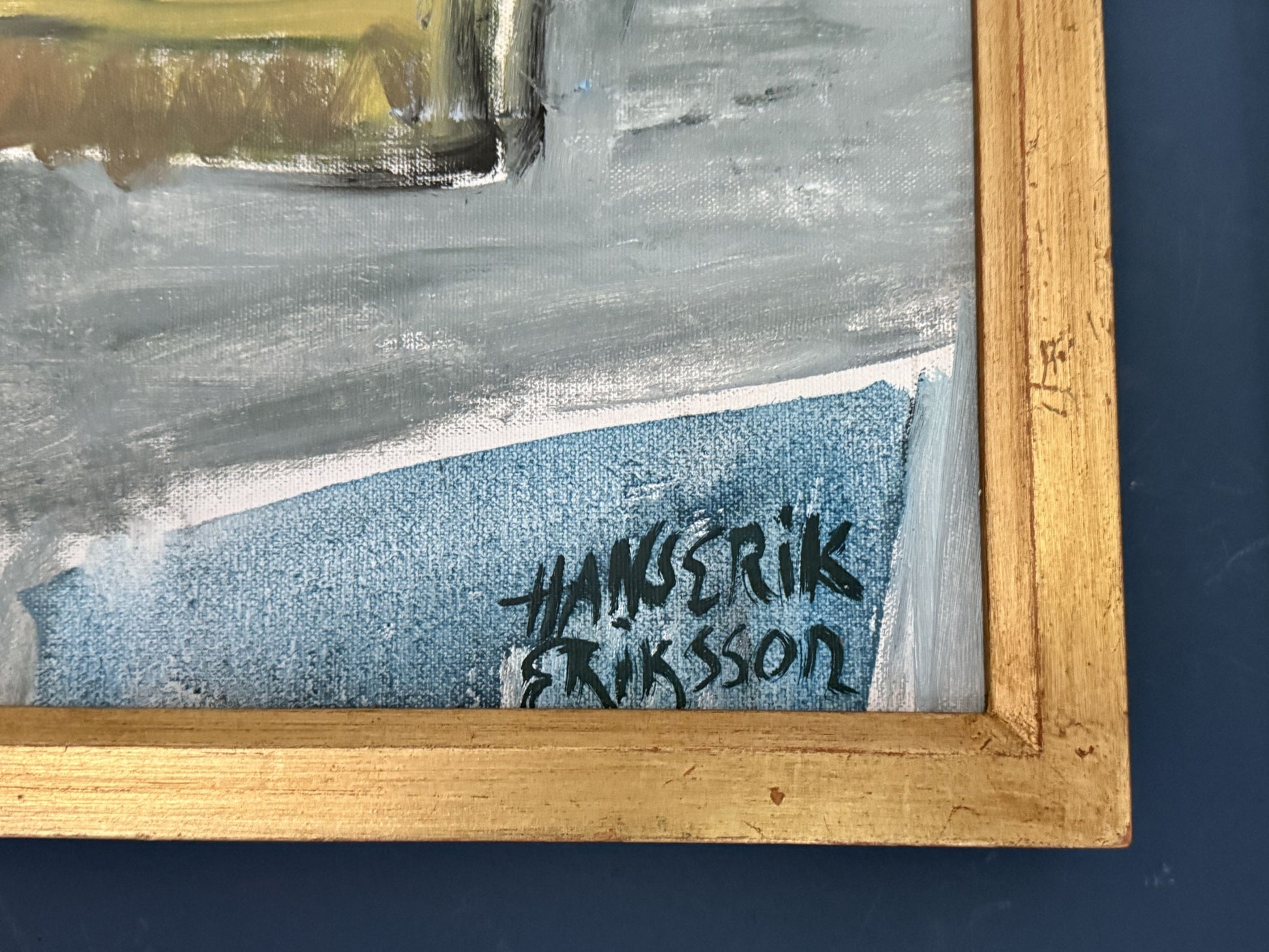 Hans-Erik Eriksson is a Stockholm painter, who lived between the years 1921 and 1998. Eriksson was born in Bromma in the greater Stockholm region and studied art at the Swedish Academy of Fine Arts. Eriksson took his creative impulses from the art of the 1950s, which was dominated by abstract expressionism. His works consist largely of floral still lifes and landscape painting, often of Stockholm and the surrounding areas in the archipelago. He exhibited in several Swedish cities. Eriksson was married to painter Brita Henriz.