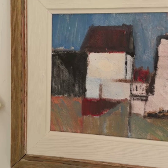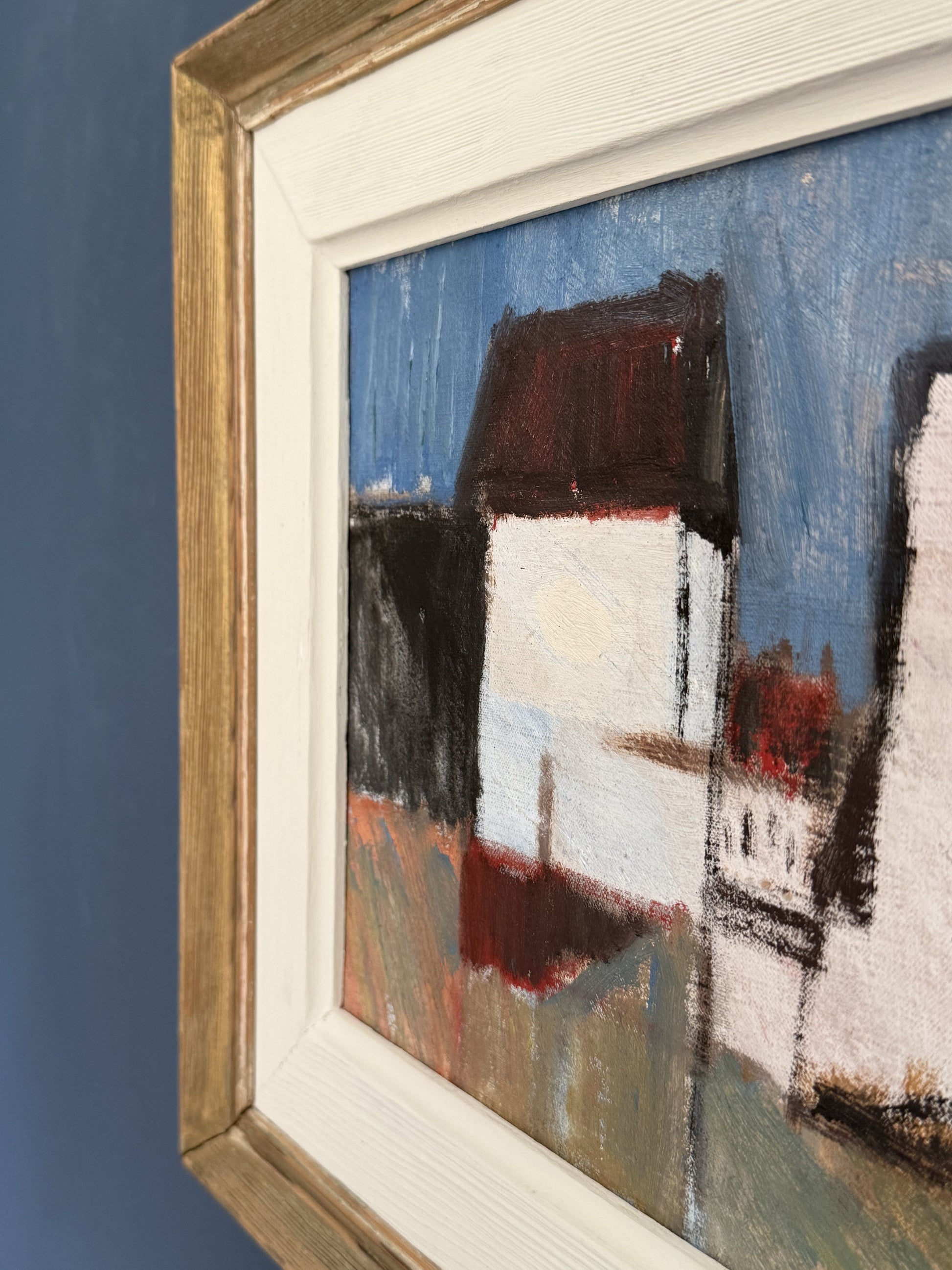 Abstract painting of a town with white houses. Oil on panel, unsigned (attributed to Torsten Hult)