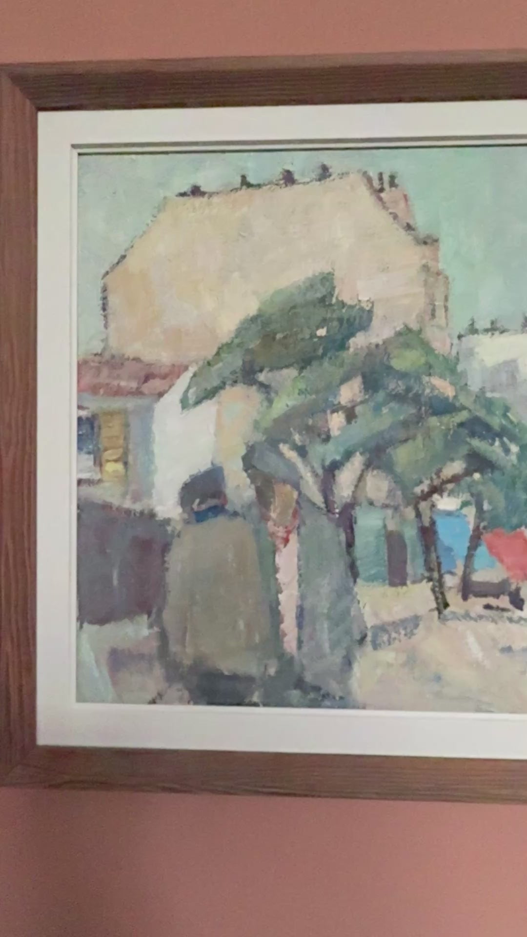 Using pretty pastel colors and quick brush strokes, painter Carl Berndtsson created an atmospheric mid-century painting depicts a small street in the Provence in a typical impressionist style. The painting contains structured layers of paint, which adds depth and character to your interior.