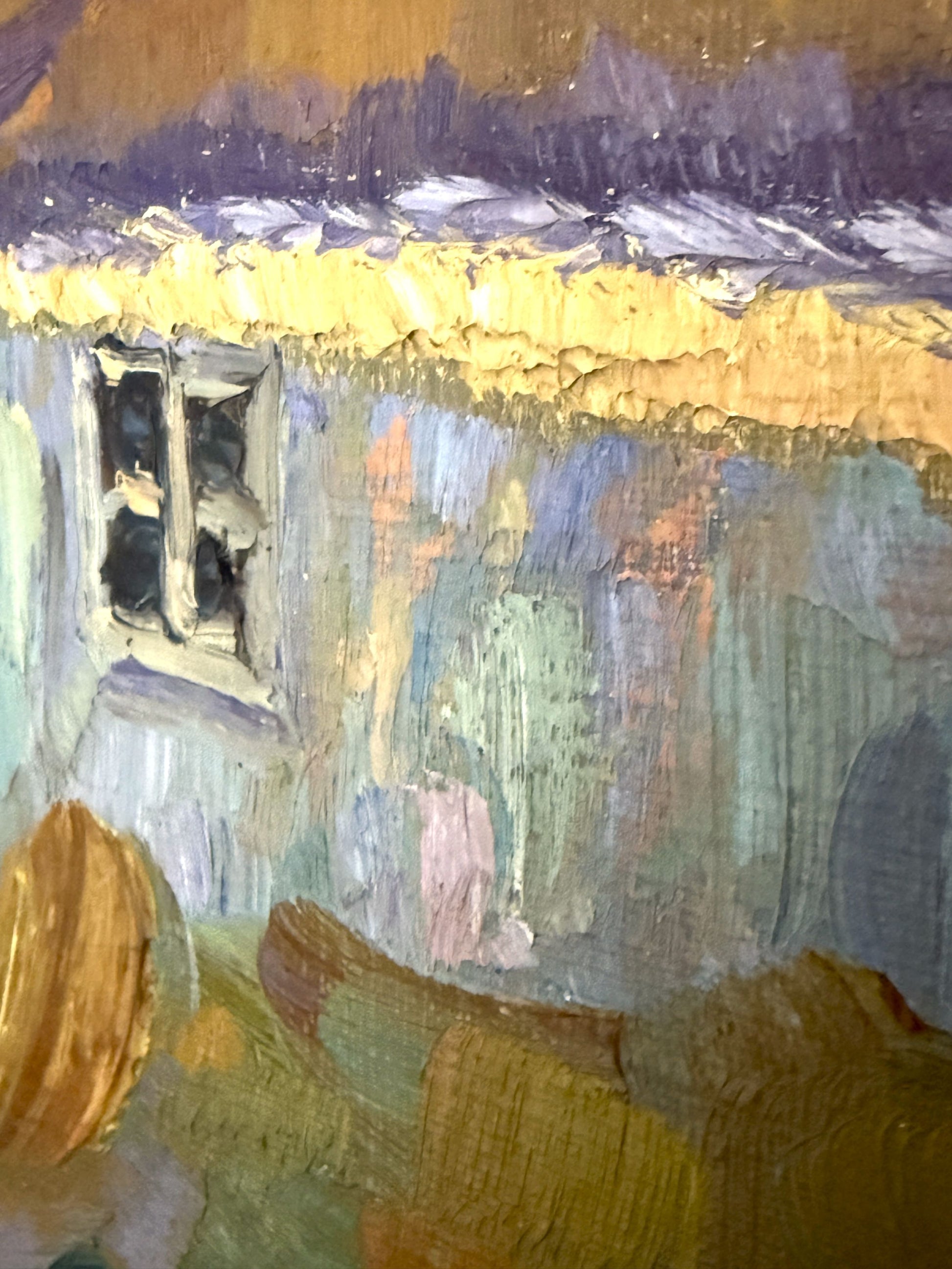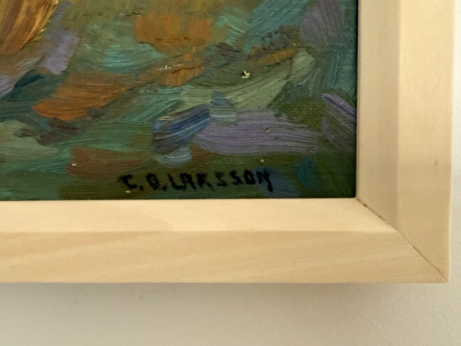 Stunning use of colors reminiscent of Vincent van Gogh and the fauvists. Painter Carl Olsson very skillfully created a landscape with depth and lots of appealing details that keep you looking over and over again.
